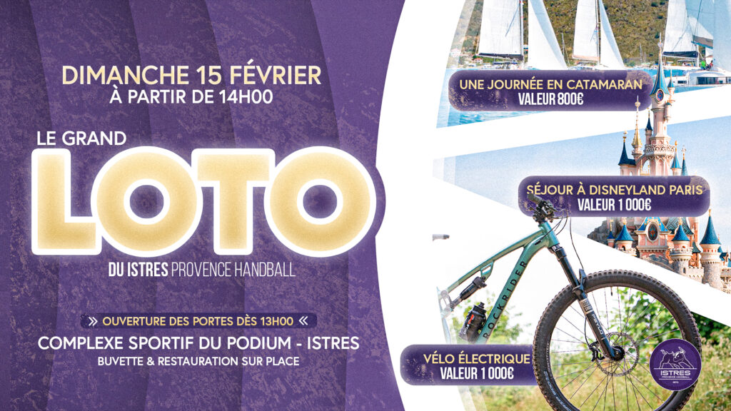 Dimanche 15 février – à partir de 14h00 Complexe sportif du Podium – Istres Le Istres Provence Handball organise son grand loto annuel, un rendez-vous convivial et populaire, avec de très nombreux lots à gagner grâce à la générosité de nos partenaires. Les gros lots à gagner Un séjour à Disneyland Paris – valeur 1 […]